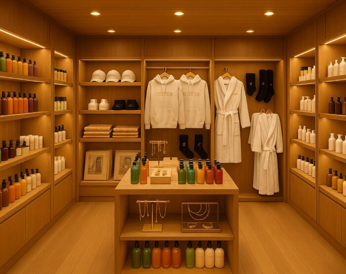 The Boutique on Nefertem is conceived as a quiet extension of the journey, where objects of place and craft are gathered with intention. Premium soaps, botanical lotions, and sun care reflect the natural rhythms of the Nile, while Egyptian cotton apparel offers refined essentials shaped with ease.
